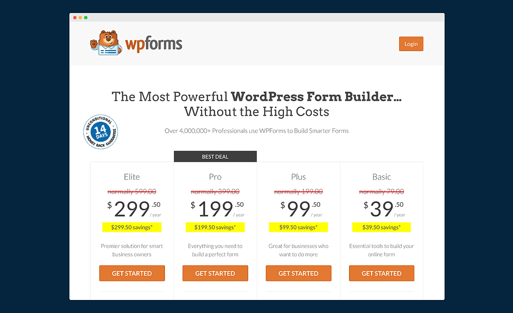 Once those free users are installed, they’ll get help to ensure they get value out of the free plugin – and then an upsell for the paid version. That upsell will include a huge discount on the first year, typically accompanied by a countdown timer. This creates urgency that is extremely effective at generating conversions; the psychological response is akin to panicking users into buying: