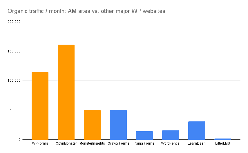 I want to be clear on the traffic to those “smaller” sites: they are bigger than most other WordPress product businesses. Here are the top three compared to a couple of other WordPress businesses for context: