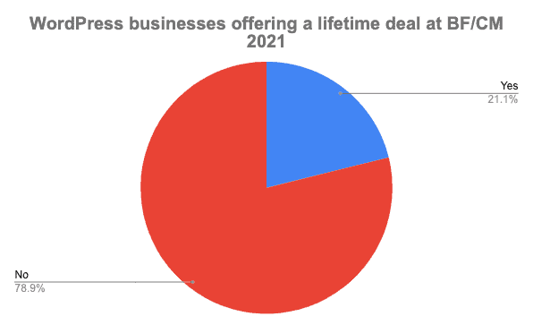 1. But please, please be careful with lifetime bundles. Last year 21% of WordPress businesses offered a lifetime deal. We’re ok with lifetime pricing in careful moderation, but it can be very dangerous. It’s revenue now at the expense of the health and value of your business later.