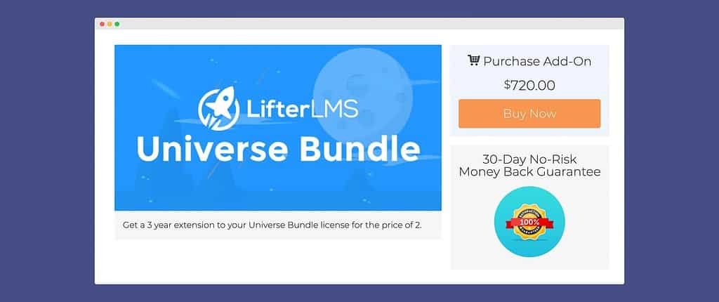 A good way of doing that is to offer existing customers a non-price bundle. An extension of their current plan is a really nice way of doing that. LifterLMS offers 3 years for the price of 2 last year. This is a 1/3 discount, but it’s framed as a non-price offer.
