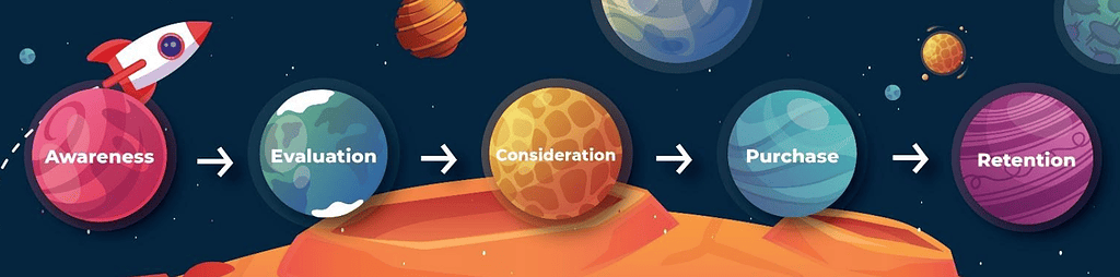 The purchase funnel for content marketing. You’re going to quickly move the reader through Awareness → Evaluation, and CTA boxes are extremely useful for doing this.
