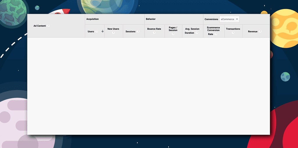Example of Google Analytics; you’ll see a list of your posts with tracked sales from each individual post.