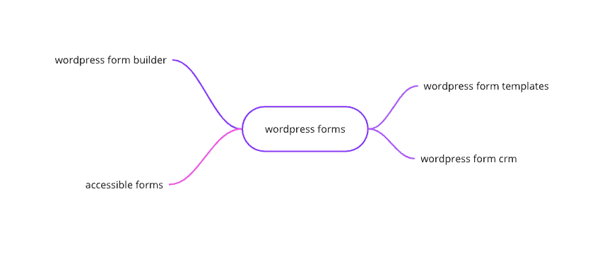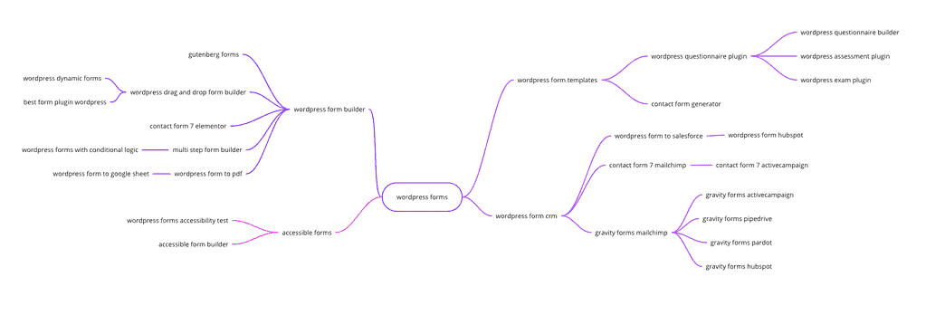The output of this is typically a keyword tree with a couple of branches. You might decide that “WordPress forms” is too competitive, but “accessible forms” or “WordPress form templates” are keywords you can compete for: