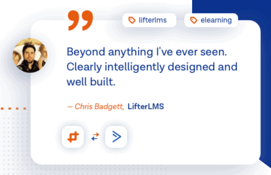 A testimonial on the WP Fusion homepage. I love the use of tags to show the use case, letting the reader quickly identify which use cases match their needs.