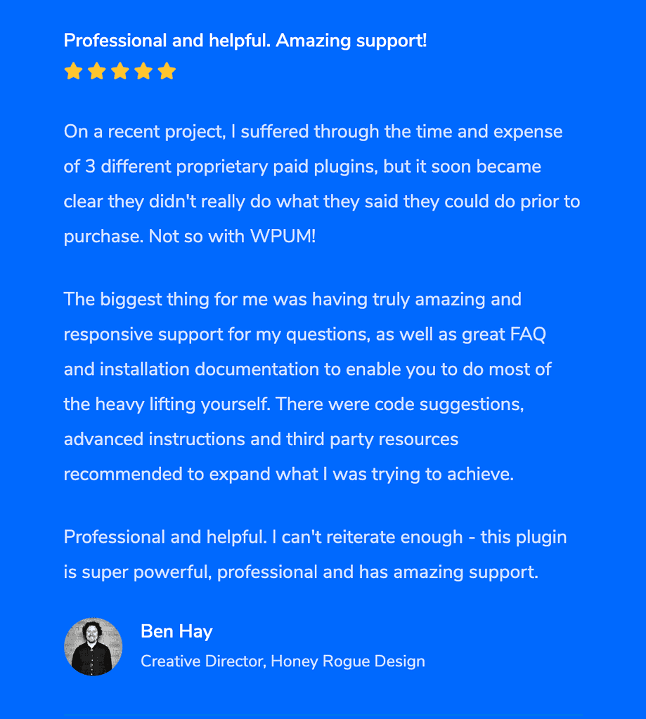 Great example of context → problem → outcome → recommendation on a review for WP User Manager.
