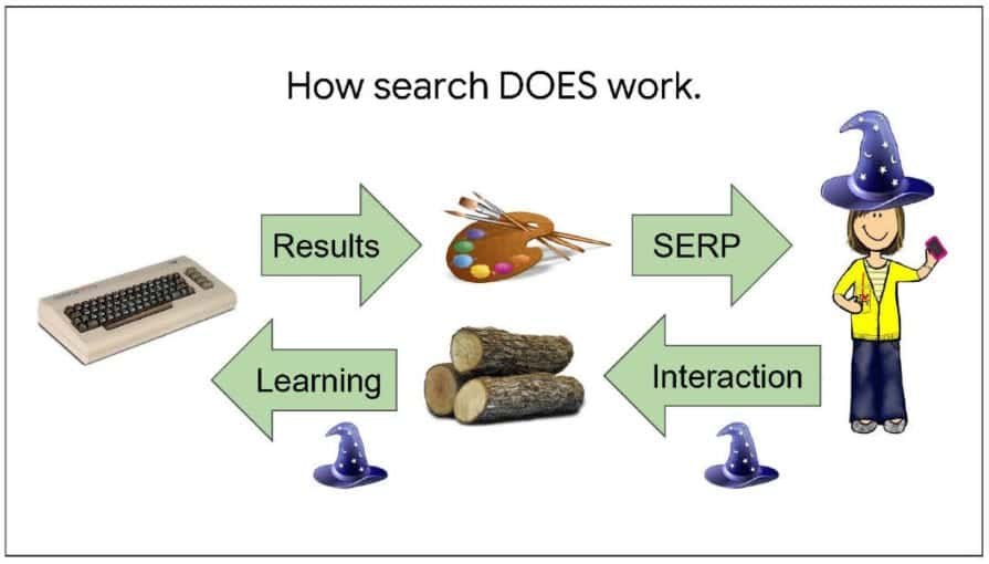 From this, Google is able to use machine learning to predict what the user will want to see in future. Suddenly, you’re using ML to rank results and tracked clicks aren’t technically a ranking factor because the ML model is the ranking factor. That is trained on user clicks, but “we don’t use clicks as a ranking factor” is technically true.